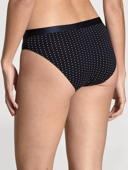 Der CATE PRINT Slip von CALIDA macht keine halben Sachen: Beim Pünktchen-Muster geht er in die Vollen, bei der Auswahl hochwertiger Materialien zeigt er echten Einsatz. Trifft luftige Baumwolle auf hautschmeichelnden Satin, kommt der Wohlfühleffekt nie zu kurz. Genauso wenig wie ein edler Look. Doppelt punkten? Mit passendem BH oder Hemdchen aus der CATE PRINT Kollektion wirkt er gleich nochmal so schön.