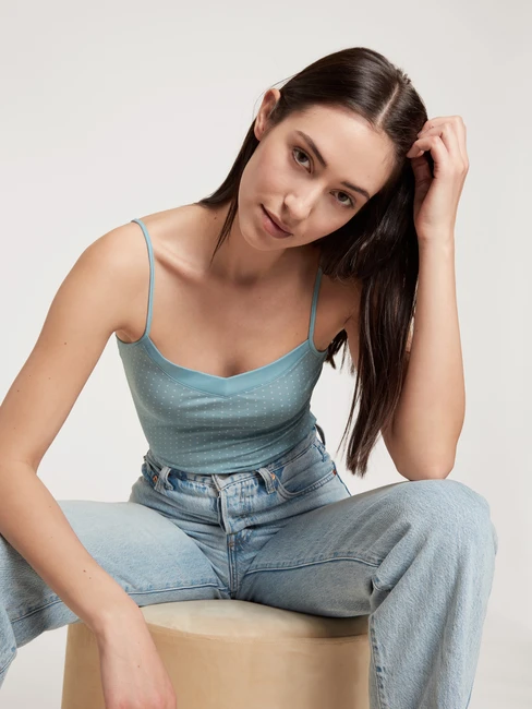 Wir machen hier mal einen Punkt – oder lieber gleich tausende! Das CATE PRINT Spaghetti-Top von CALIDA ist ein heisser Anwärter auf die Polka-Dot-Krone und macht mit seinem stilvollen Mix aus erwachsener Farbe, hübschem Muster und edlen Satin-Details grosse Tragelust. Und zwar nicht nur als Unterwäsche! Die erstklassige Verarbeitung und die atmungsaktive Baumwolle können auch als Kombi-Top oder Lounge-Favorit überzeugen.