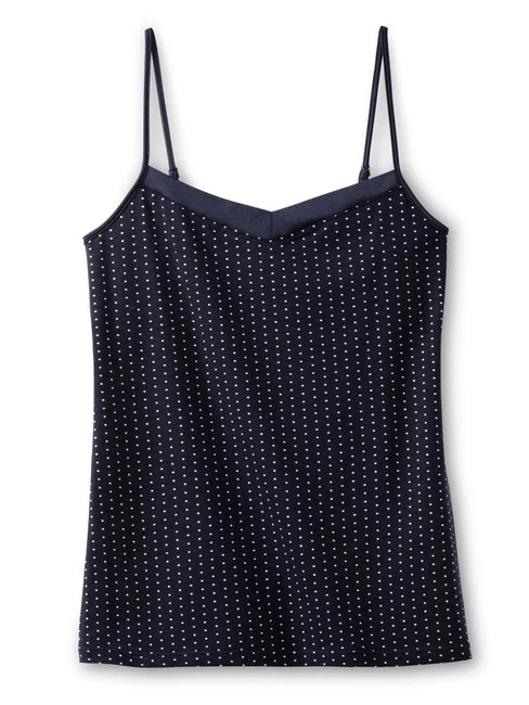 Wir machen hier mal einen Punkt – oder lieber gleich tausende! Das CATE PRINT Spaghetti-Top von CALIDA ist ein heisser Anwärter auf die Polka-Dot-Krone und macht mit seinem stilvollen Mix aus erwachsener Farbe, hübschem Muster und edlen Satin-Details grosse Tragelust. Und zwar nicht nur als Unterwäsche! Die erstklassige Verarbeitung und die atmungsaktive Baumwolle können auch als Kombi-Top oder Lounge-Favorit überzeugen.