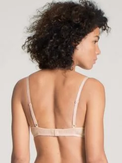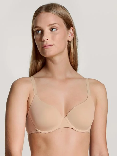 Gemoldeter Schalen-BH aus der neuen Basic-Serie ECO SENSE von CALIDA. Für die Fertigung dieses BH wurde ein hoch-innovatives Garn aus recyceltem Nylon verwendet. Die sogenannte ECONYL®-Faser wird aus textilen Produktionsresten, die zur Entsorgung bestimmt wären, gesammelt und in ein neues Garn verwandelt, das die gleichen Eigenschaften wie Nylon aus neuem Rohstoff hat. So wird eine Belastung der Umwelt durch neue Abfälle vermieden.