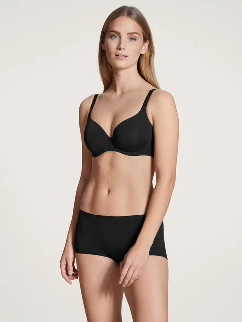 Gemoldeter Schalen-BH aus der neuen Basic-Serie ECO SENSE von CALIDA. Für die Fertigung dieses BH wurde ein hoch-innovatives Garn aus recyceltem Nylon verwendet. Die sogenannte ECONYL®-Faser wird aus textilen Produktionsresten, die zur Entsorgung bestimmt wären, gesammelt und in ein neues Garn verwandelt, das die gleichen Eigenschaften wie Nylon aus neuem Rohstoff hat. So wird eine Belastung der Umwelt durch neue Abfälle vermieden.