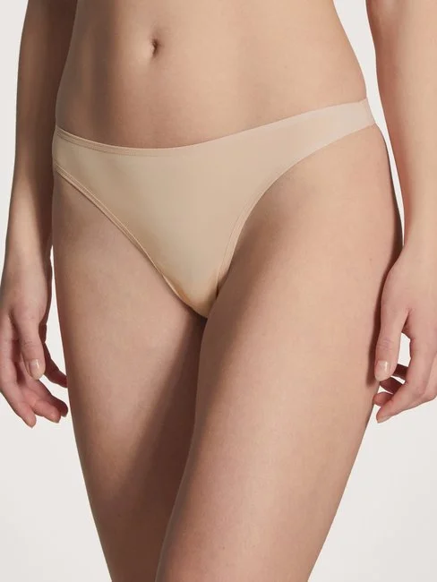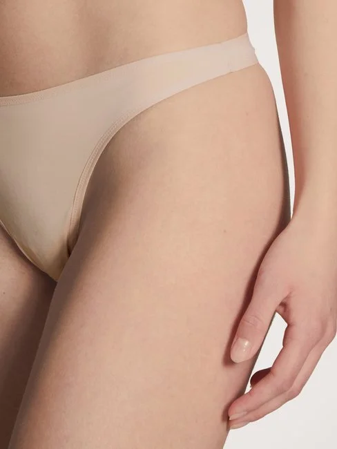 Die Basic-Serie ECO SENSE von CALIDA hält, was sie verspricht. Eine unheimlich softe, aber dennoch strapazierfähige Materialmischung wird mit einer cleanen und modernen Schnittform kombiniert und zu diesem atmungsaktiven String verarbeitet. Vorder- und Rückseite des String-Tangas werden seitlich mittels zweier schmaler, weicher und elastischer Bändchen gehalten. Tipp: Ideal für Urlaub und Reisen, da extrem schnell trocknend.
