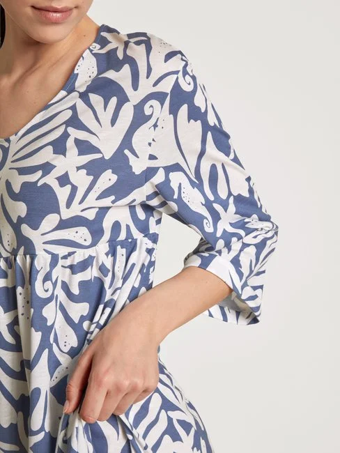 In sommerlichen Muster in hochwertigem Materialmix, lädt das Loungekleid aus der FAVOURITES COAST Serie von CALIDA zum Entspannen und Wohlfühlen ein. Der Materialmix aus Baumwolle und TENCEL™, Modal liegt ausserordentlich weich und angenehm auf der Haut und verzaubert mit hochwertigem Tragegefühl.