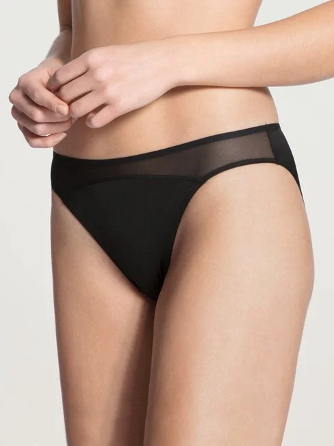 Der Rio-Slip von CALIDA aus der Serie FEMININE AIR ist dank Bondings mit sehr flachen Nähten gefertigt und zeichnet sich unter der Kleidung nicht ab. Der Tüll am Bund sorgt für eine sportlich feminine Note.