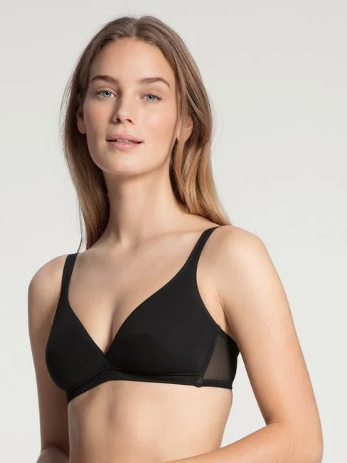 Moderner BH mit Cups aus Spacer-Technologie aus der Serie FEMININE AIR von CALIDA. Die Verarbeitung sorgt für besondere Leichtigkeit im Alltag. Das Zusammenspiel aus Tüll und Viskose-TENCEL(TM) kreiert einen Look, der zugleich sportlich und feminin ist.