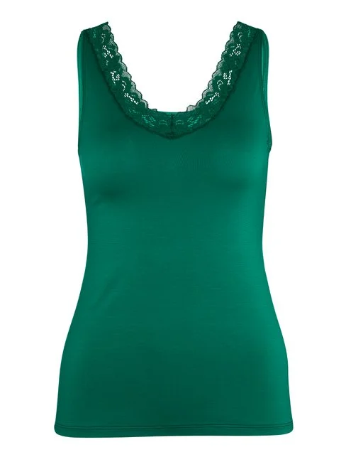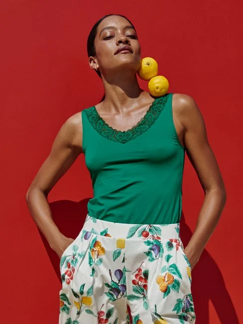 Zugegeben, die Namensgebung für das ärmellose NATURAL COMFORT LACE Top von CALIDA ist nicht besonders originell. Schliesslich verrät der Titel bereits alles, worauf sich Frau hier freuen darf: Spitze in einem modernen Ton ergänzt ein komfortables Unterhemd mit V-Ausschnitt, das die Haut dank natürlicher Baumwolle in jeder Saison atmen lässt.