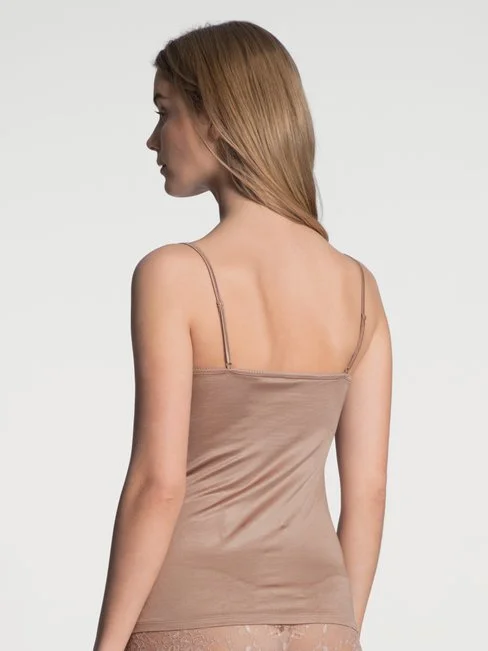 Das Spaghetti-Top der Serie SENSUAL SECRETS von CALIDA verführt mit zarter, transparenter Spitze und verwöhnt Ihre Haut mit weicher Baumwolle und edlem Glanz aus Viskose. Durch die Dreifachplattierung ist auf der Haut reine Baumwolle zu spüren, während die Aussenseite schimmernde Viskose zeigt. Besonders wertvoll ist die reichhaltige, hochwertig verarbeite Spitze, die das Dekolleté verführerisch einfasst.