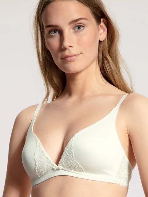 Neue Schnittform aus der beliebten SENSUAL SECRETS Serie von CALIDA. Die Reihe der BHs wird durch ein komfortables Modell ohne Bügelverarbeitung erweitert. Die glanzvolle Viskose an der Aussenseite wurde gekonnt mit verführerischer Spitze veredelt.