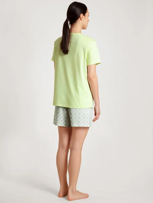 Der Kurz-Pyjama aus der SPRING NIGHTS Serie von CALIDA lässt von wärmenden Sonnenstrahlen träumen. Reine Baumwolle in dünner Single Jersey-Bindung liegt weich auf der Haut und begeistert mit tollem Tragegefühl. Der vom Garten inspirierte Mosaikprint im Zusammenspiel mit saisonalen Farbnuancen spiegelt das Aufblühen der Natur in den Frühlingsmonaten wider.