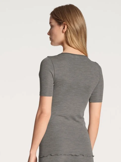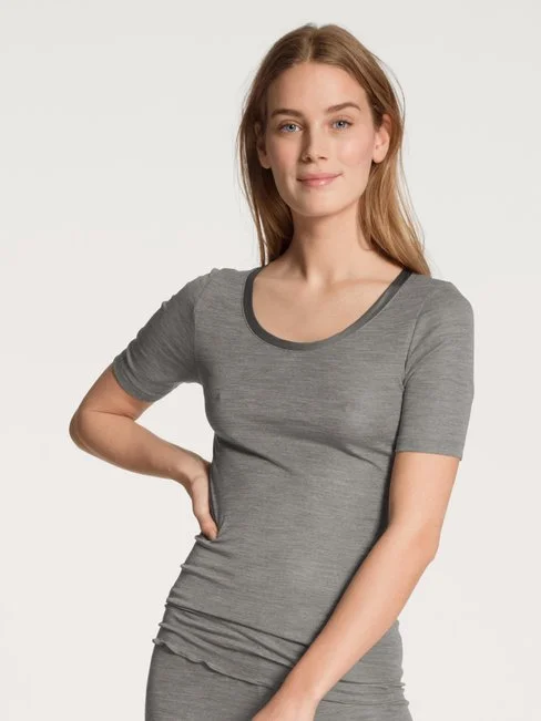 Das Basic-Kurzarm-Shirt der Serie TRUE CONFIDENCE von CALIDA ist weich und schmeichelt auch empfindlichster Haut. Wolle ist in der Lage, Feuchtigkeit gut aufzunehmen, ohne sich selbst feucht anzufühlen. Das verhindert das Absinken der Körpertemperatur und man hat immer ein wohlig warmes und vor allem trockenes Gefühl.