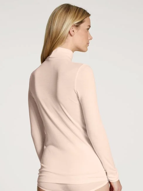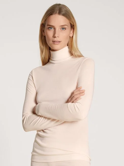 Das Longsleeve mit Rollkragen der Serie TRUE CONFIDENCE von CALIDA ist extrem weich und schmeichelt auch empfindlichster Haut. Wolle ist in der Lage, Feuchtigkeit gut aufzunehmen, ohne sich selbst feucht anzufühlen. Das verhindert das Absinken der Körpertemperatur und man hat immer ein wohlig warmes und vor allem trockenes Gefühl.