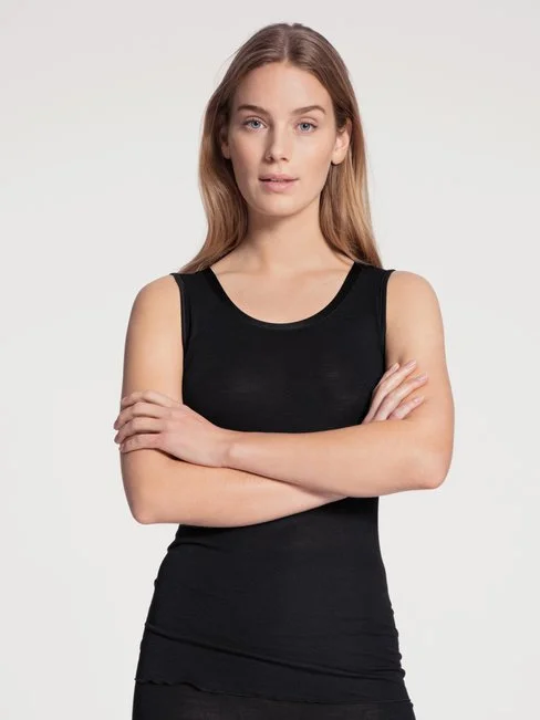 Das funktionelle Tank Top der Serie TRUE CONFIDENCE von CALIDA ist extrem weich und schmeichelt auch empfindlichster Haut. Wolle ist in der Lage, Feuchtigkeit gut aufzunehmen, ohne sich selbst feucht anzufühlen. Das verhindert das Absinken der Körpertemperatur und man hat immer ein wohlig warmes und vor allem trockenes Gefühl. Durch die antibakteriostatische Wirkung der Wolle entsteht zudem kein unerwünschter Körpergeruch.