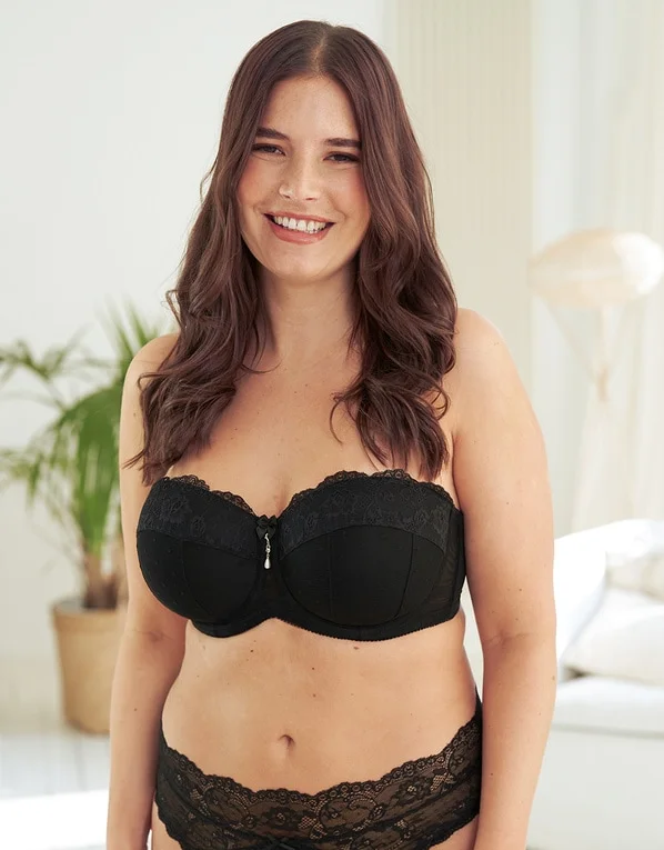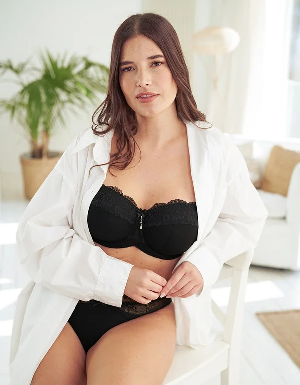 Mit „Diamond“ black bist Du perfekt für den Sommer oder andere Anlässe, bei denen Du trägerlos unterwegs sein möchtest, ausgestattet. Du kannst die Träger vom Diamond abnehmen und ihn trägerlos tragen und bist so komplett flexibel in Deiner Outfitwahl. Der höhere Mittelsteg und der gerade Ausschnitt formen ein atemberaubendes Dekolleté, halten aber gleichzeitig alles an Ort und Stelle. Der BH ist mit dekorativer Spitze mit Polka-Dot-Mesh überzogen, die ihn zu einem sinnlichen Hingucker macht.