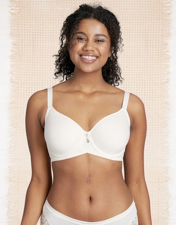 Die Cups bestehen aus einem luftdurchlässigem Abstandstextil, wodurch der BH so leicht ist, dass Du ihn beim Tragen kaum spüren wirst. Das feuchtigkeitstransportierende Material am Unterbrustband gibt die zudem ein angenehmes Tragegefühl. Dank des hellen Farbtons lässt sich „Ivy“ ideal unter hellen Oberteilen tragen und durch die nahtlos geformten Cups zeichnen sich außerdem keine unschönen Nähte auf der Kleidung ab.