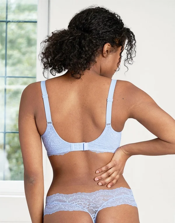 Die Cups unterstützen eine natürliche, zurückhaltende Brustform und die edle Spitze auf dem weichen Unterbrustband verleiht „Lucy“ das gewisse Etwas.