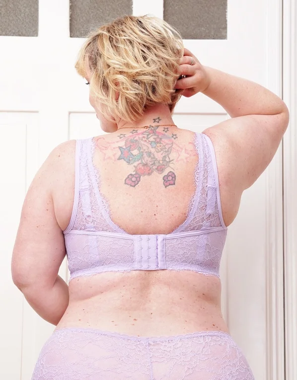 Das Bralette „Emilia“ im sommerlichen Fliederton aus zarter Spitze ist leicht wattiert und bügellos, wodurch es Dir einen besonders hohen Tragekomfort bietet.