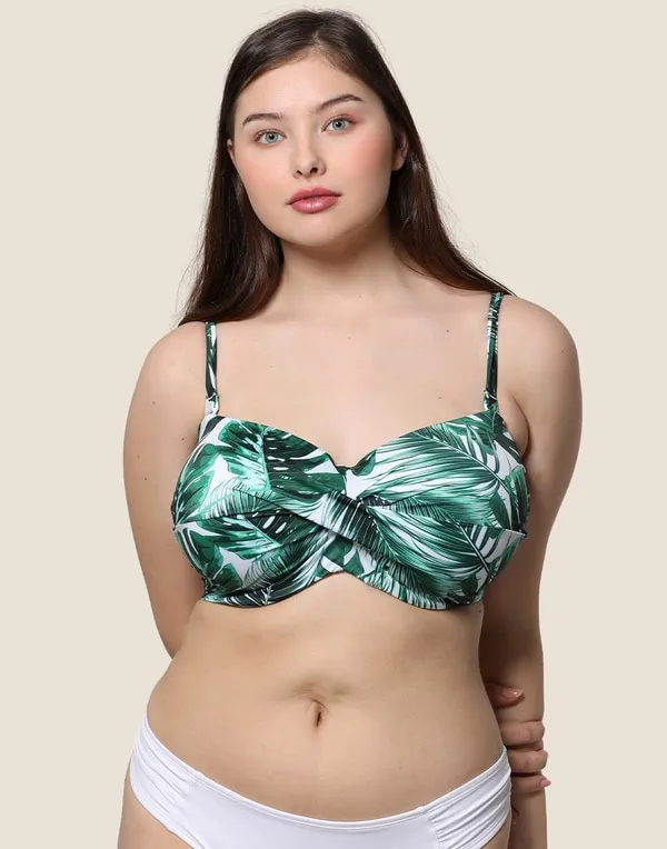 „Bali“ ist unser Multiway-Bandeau-Bikini mit Palmenprint. Die wattierten Cups umschließen die Brust und durch die raffinierte Drapierung wird eine schöne Silhouette geformt, ohne aufzutragen.