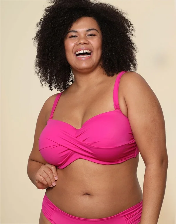 Der Bandeau-Schnitt und die raffinierte Drapierung am Vorderteil sorgen für eine schöne Silhouette. Die wattierten Cups umschließen die Brust und geben so einen tollen Halt – auch trägerlos! Unser „Miami“ Top lässt sich außerdem mit geraden Trägern, gekreuzten Trägern und als Neckholder tragen. Die unterschiedlichen Träger für die verschiedenen Optionen sind bei der Lieferung dabei.