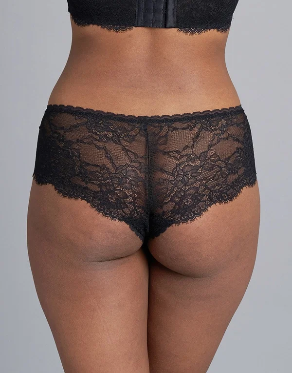 Unsere Panty „Emilia“ besteht komplett aus floraler, weicher Wimpern-Spitze und schmiegt sich vorteilhaft an Deine Kurven an.