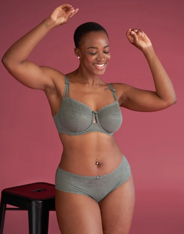 Kombiniere Panty „Sienna“ olive mit BH „Sienna“ olive.