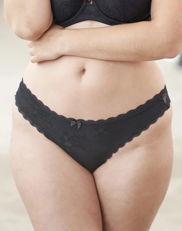 Unser String „Sienna“ besteht komplett aus feinster 3D-Spitze und setzt Deine Kurven gekonnt in Szene.